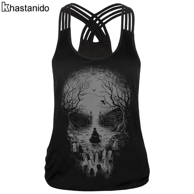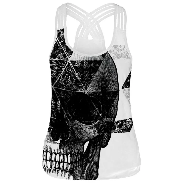 Майка женская без рукавов Череп 3d Печатные Футболки Атласный топ фитнес Повседневные тренировки Топы сексуальные дышащие летние жилеты Черный Cami купить