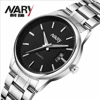 2018 Мужские часы лучший бренд класса люкс Nary часы из нержавеющей стали Дата День кварцевые часы мужские s часы 30 м Водозащита