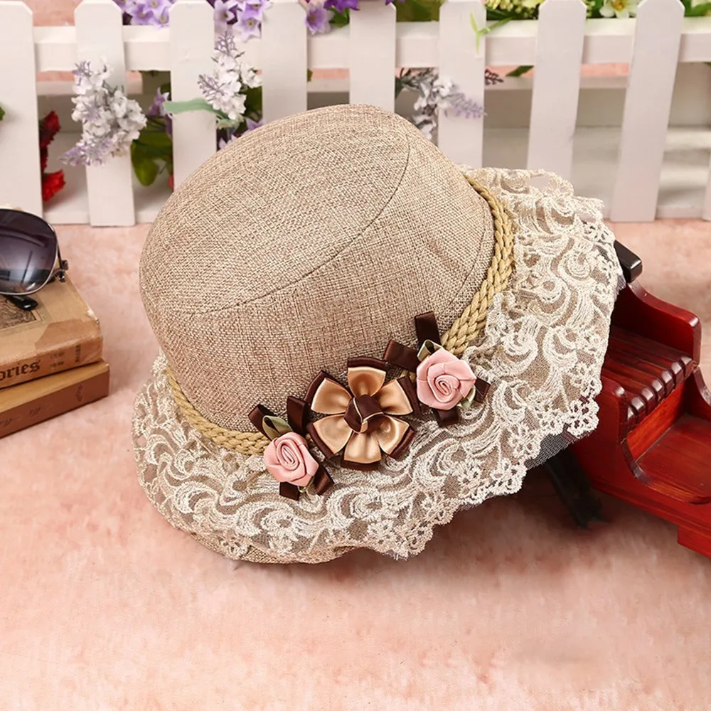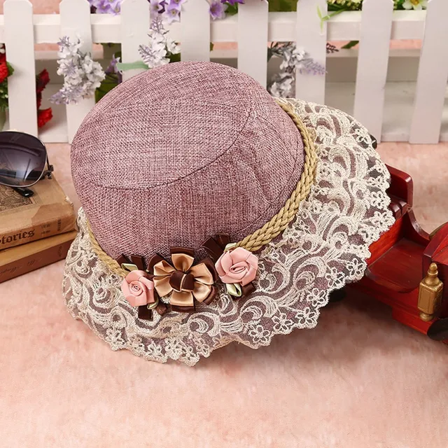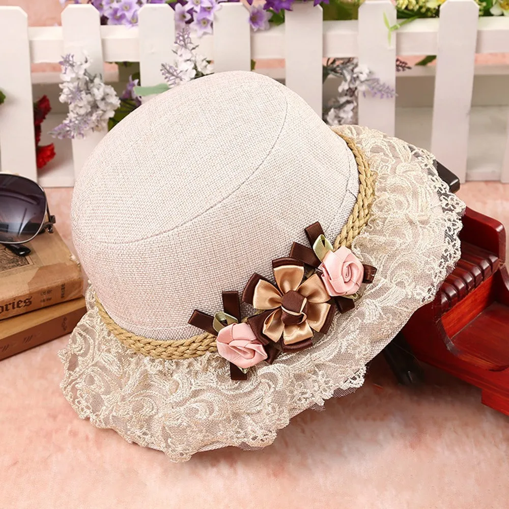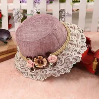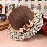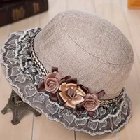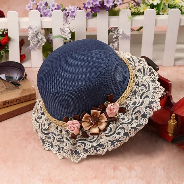 2018 Лидер продаж Солнцезащитная шляпа солнца сладкий 3D цветок кружева широкими полями синий элегантные вечерние Кепки праздник пляжная мода Повседневное Шапки женский купить