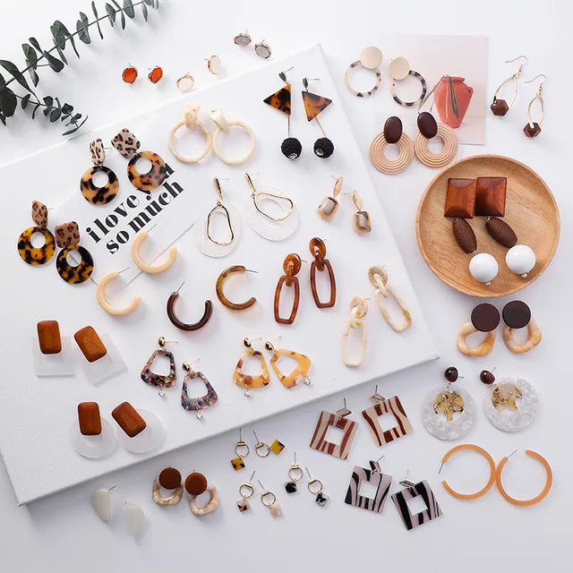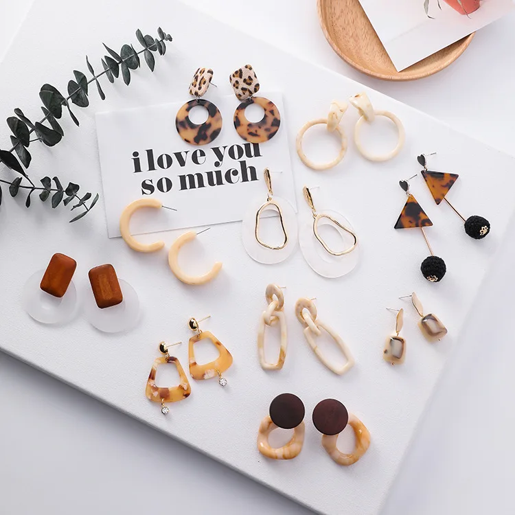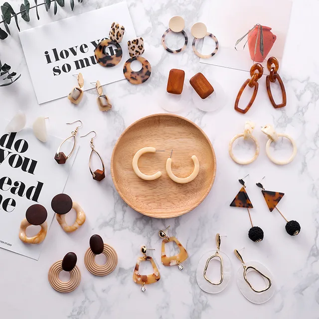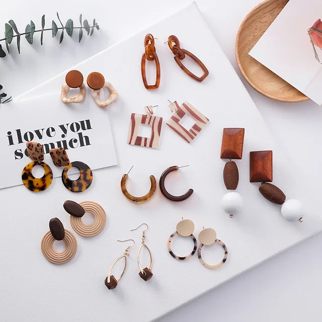 2018 простые винтажные леопардовые коричневые ацетатные акриловые геометрические деревянные висячие серьги для вечерние партия Шарм ювелирные изделия Pendientes купить