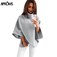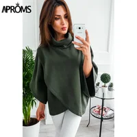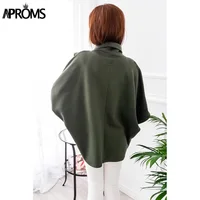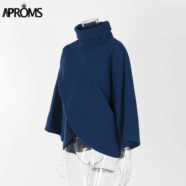 Aproms элегантный серый водолазка Нерегулярные блузка женская 3/4 рукав повседневное 90 s Свободный Топ уличный стиль широкие манжеты рубашк купить