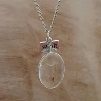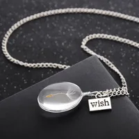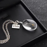 Натуральный Одуванчик образца Стекло клеем лист и желаю Tag кулон Цепочки и ожерелья Шарм Для женщин овальный время камень Цепочки и ожерелья купить