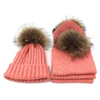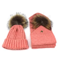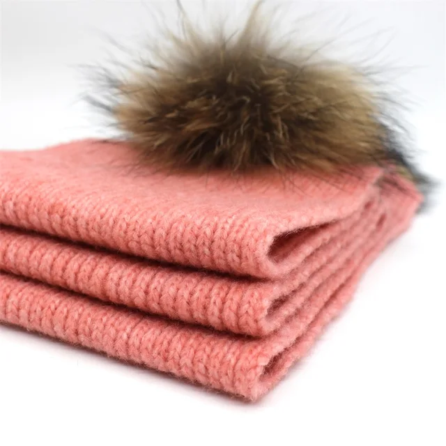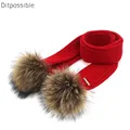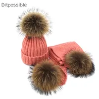 Ditpossible дети натуральный мех шарф комплект Зимняя шерстяная шапка и шарф для девочек, для мальчиков вязаные шапочки skullies шапки набор шарфов помпоном купить