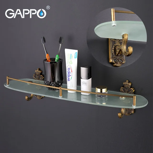 GAPPO стеклянные полки для ванной комнаты латунная вешалка для полотенец двойной держатель Держатель для полотенец Держатель для душа подставка аксессуары для ванной комнаты купить