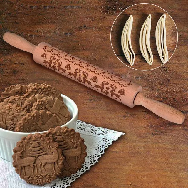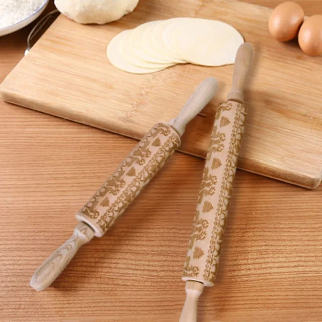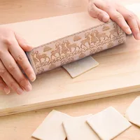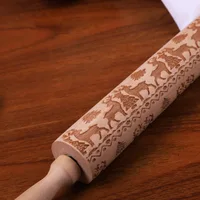 2018 Рождество тиснение Rolling Pin деревянные выгравированы скалка для выпечки печенье торт тесто ролик Олень Снежинка купить
