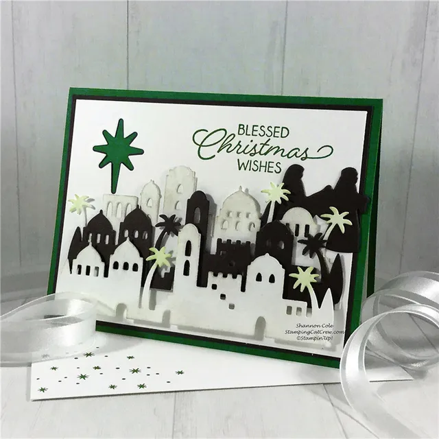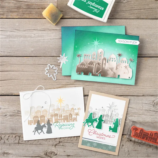 Julyarts 5 шт./лот 14*14 см 115 * мм 60 мм ясно марки металлический трафарет для Скрапбукинг Вифлеем здания умирает штамп трафарет купить