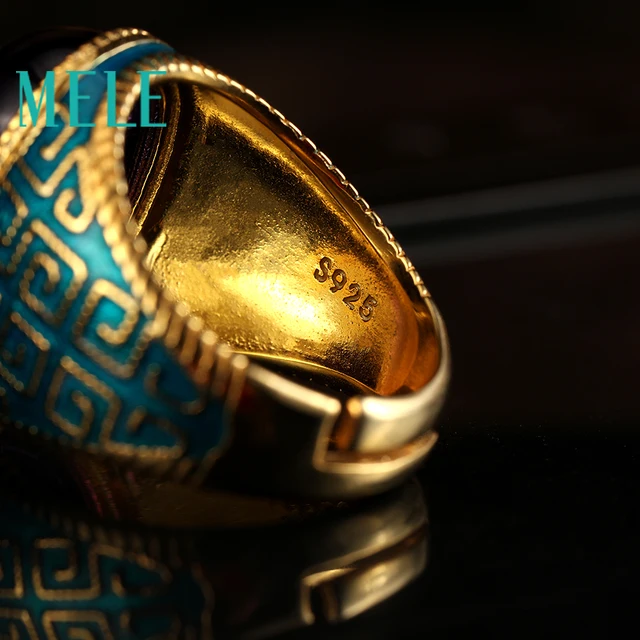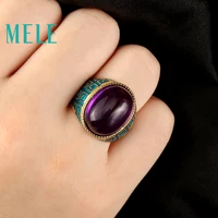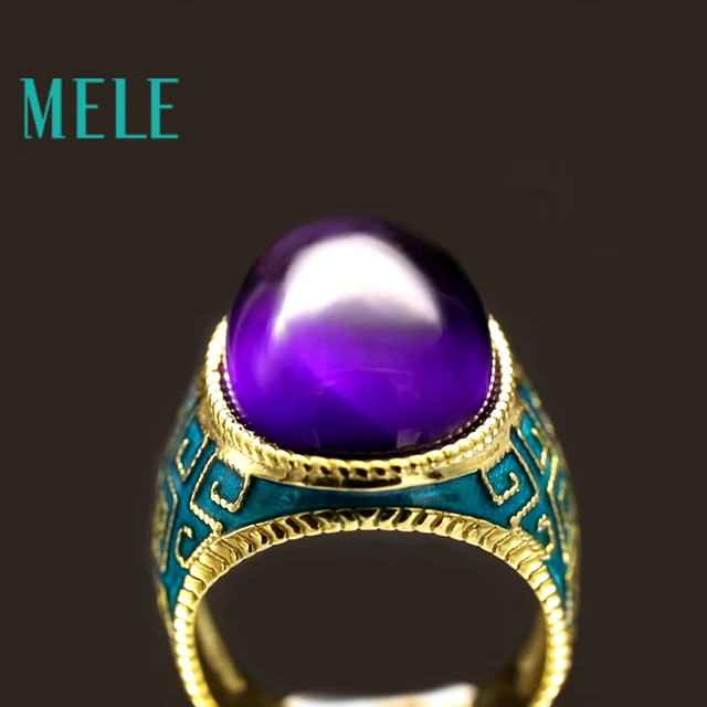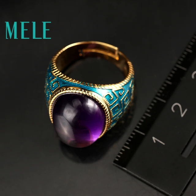 Натуральный Аметист 925 Серебряные кольца для женщин с большой овальной мм 13X18 мм драгоценный камень Эмаль craft Винтаж ювелирные украшения в Фиолет купить