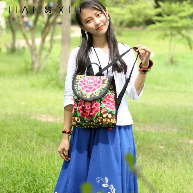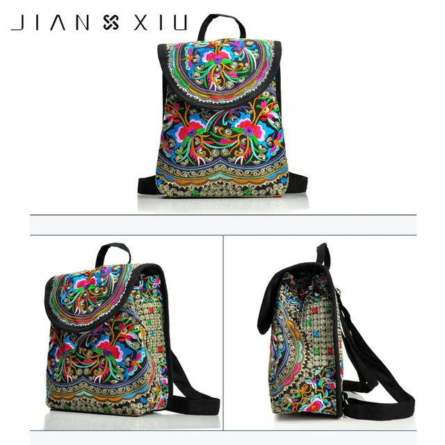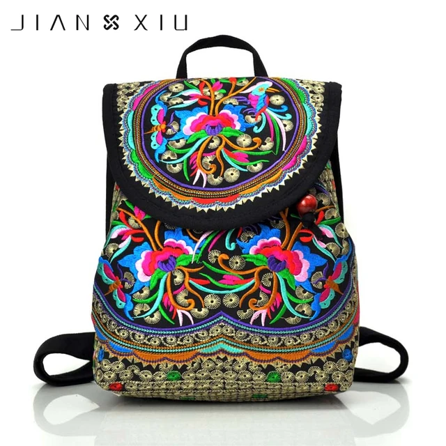 JIANXIU китайский стиль Цветочный Вышивка Рюкзак Винтаж Этническая сумка для девочек женские уникальные школьные сумки для женщин Путешествия Рюкзак Сумки купить