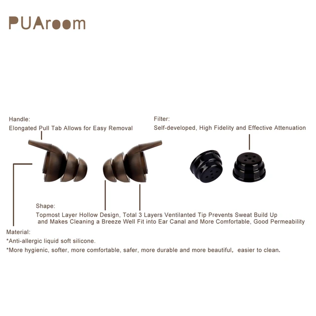 - [Сохранить качество звука в Профессионале]: PUAroom музыканты беруши содержит точный фильтр. Точный структурный фильтр уменьшает и ослабляет фоновый шум и высокочастотное затухание шума, тем самым сохраняя полезные музыкальные и речевые сигналы, подходящие для музыкантов, ударников, барабанщиков, концертов, клубов и многое другое. Профессионально retion музыка, голос и разговор громкость через беруши с переменной защитой затухания фильтры, что звук не будет приглушен, как беруши из полиуретана.