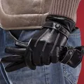 Горячая распродажа! Новые черные мужские кожаные перчатки бархатные внутри ветрозащитные мягкие теплые мужские варежки для вождения теплые холодные перчатки Рождественский подарок