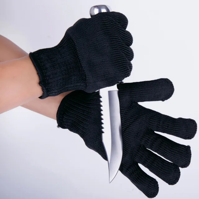 Анти-резка перчатки черные рабочие защитные перчатки порезостойкие защитные из нержавеющей стали проволока Мясник Тактические Военные перчатки