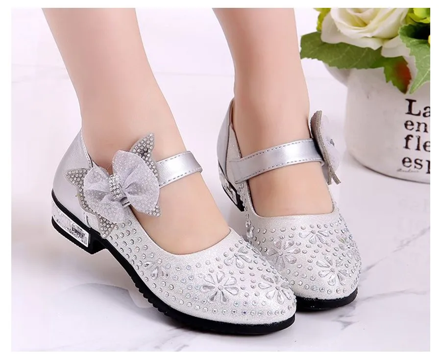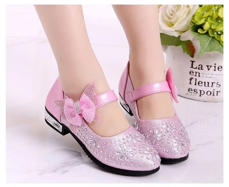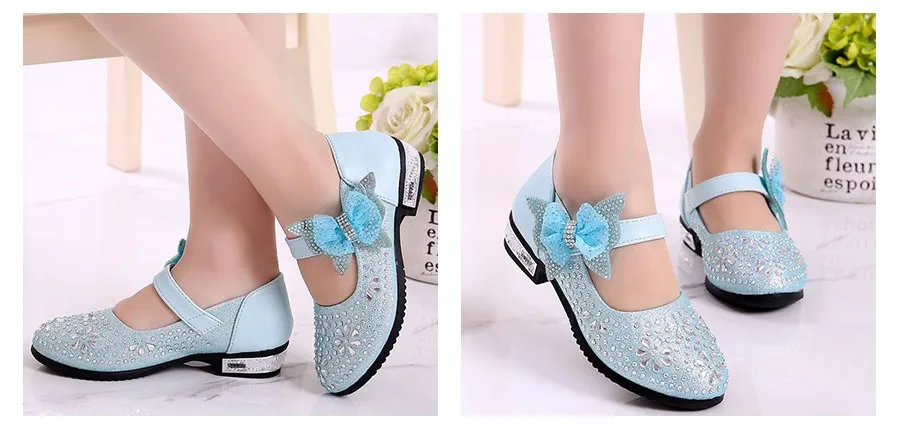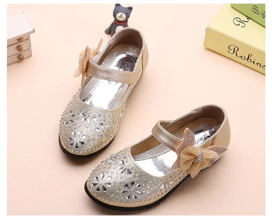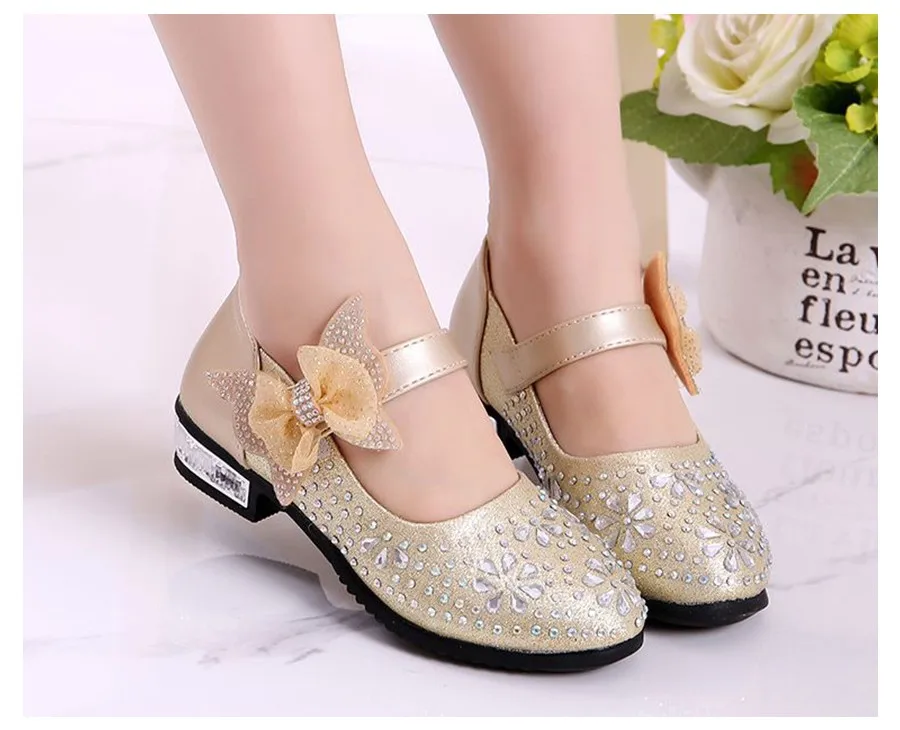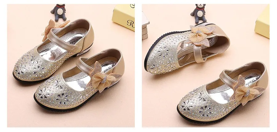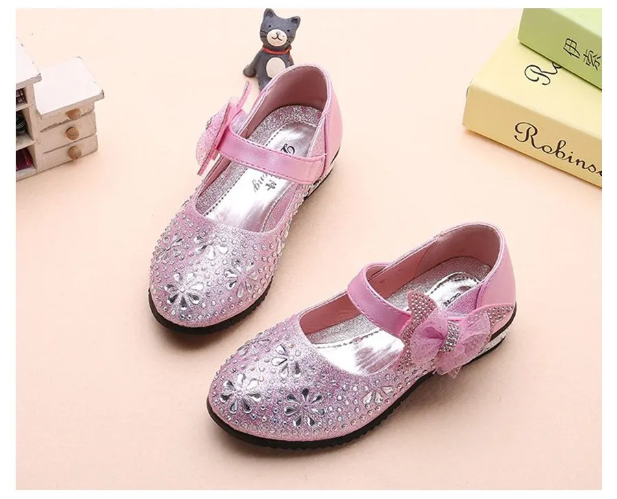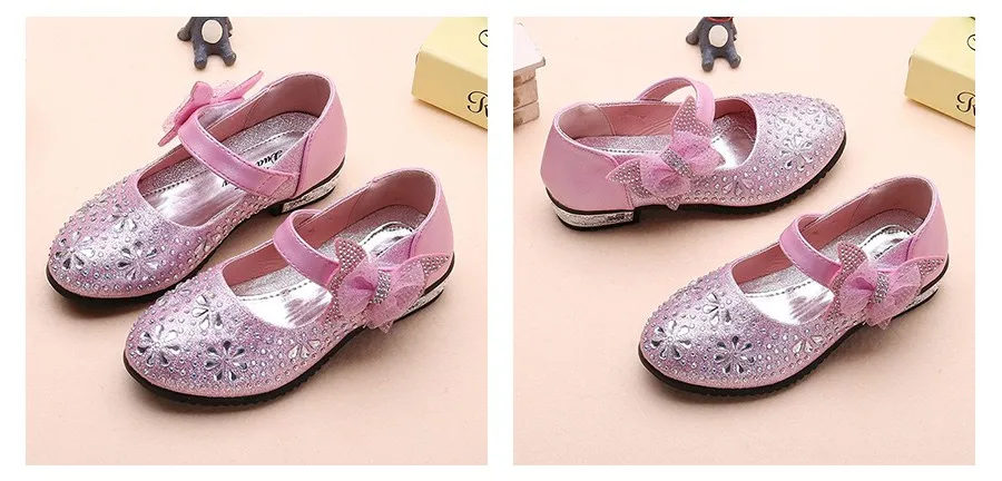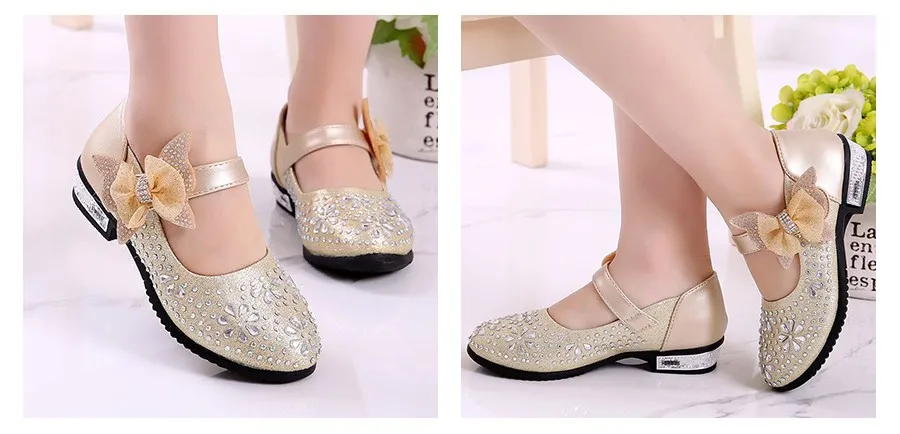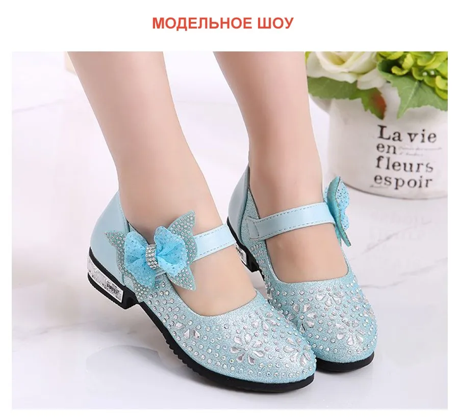 туфли для девочек принцесса Вечеринка Кожаные ботинки Цветочница фальшивый бриллиант обувь ребятишки галстук-бабочка Платья Размер 26-36