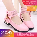 Sibahe/детская обувь, детская кожаная обувь принцессы для девочек, обувь для танцев с бантом, Свадебная обувь для вечеринки, милая детская обувь на плоской подошве, размер 26-36