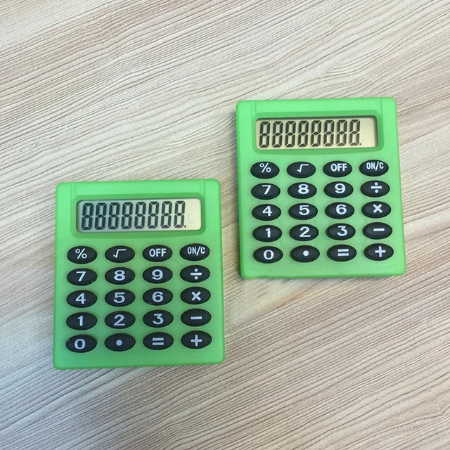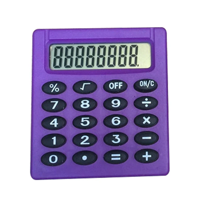 Тип изделия: калькулятор Материал: пластик Цвет: Серебряный, синий, зеленый, розовый, фиолетовый Размеры: 46*50 мм Источник питания: кнопочный аккумулятор Максимальное цифры: 8 Состояние: новый бренд Посылка включает: 1 х калькулятор