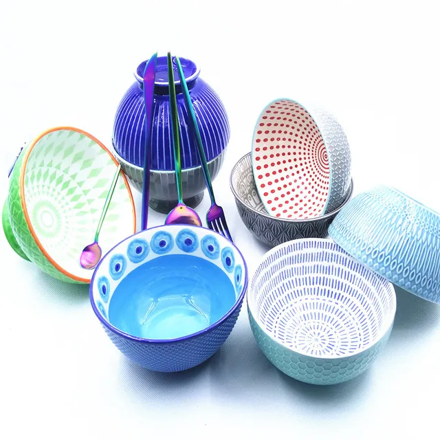 Керамика с рисунками фруктов Форма салатник Цвет ful дети рисом забавные подглазурная Цвет посуда набор мороженое чаша 4 шт./компл.