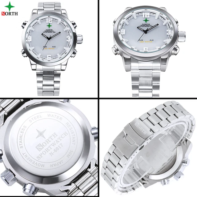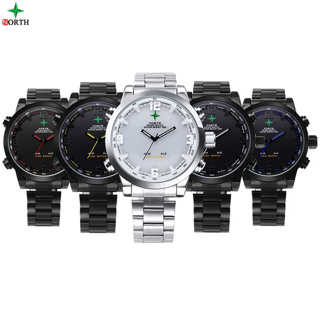 Северная Для мужчин s спортивные часы Водонепроницаемый наручные часы цифровой светодио дный военные часы Для мужчин аналоговые кварцевые часы мужской моды светодио дный Для мужчин часы