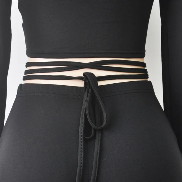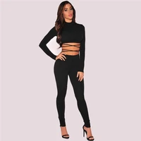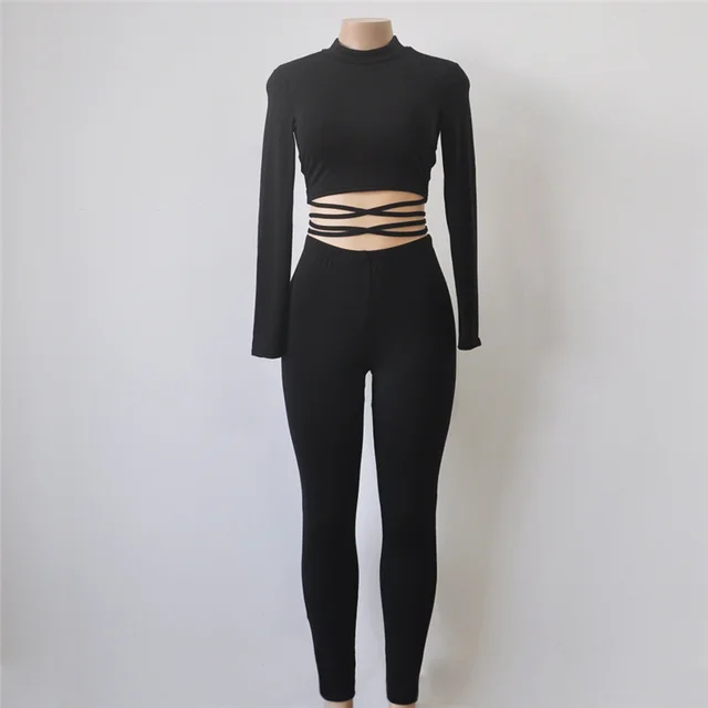 С длинным рукавом бинты Растениеводство Топ Для женщин комплект из двух предметов топ и брюки лодыжки Длина эластичный пояс комплект из 2 частей Для женщин спортивный костюм Для женщин комплект купить