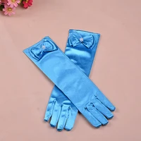 Перчатки для девочек длинные перчатки принцессы девочек свадебное платье перчатка с бантом костюм аксессуары атласные перчатки день рождения подарок синий