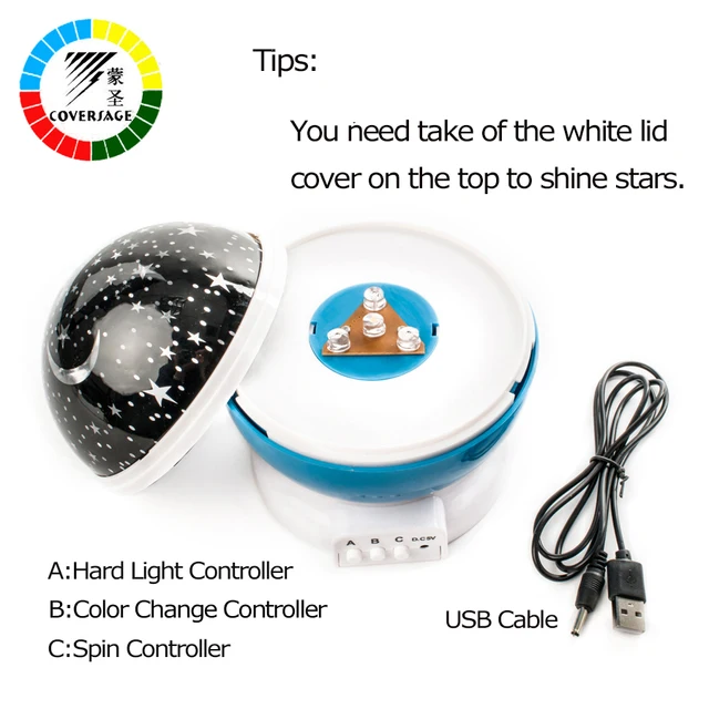 Важно: вам нужно снять белую крышку, чтобы быть проектором, чтобы светить звездами, пожалуйста, обратите внимание на этот момент.