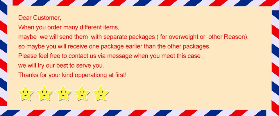Пожалуйста, не стесняйтесь связаться с нами о вашем отслеживании информации, иногда это занимает больше времени, чем вы ожидали, так как это международный бизнес, нам нужно больше времени, чтобы очистить заказ. Спасибо за ваше любезное понимание заранее!